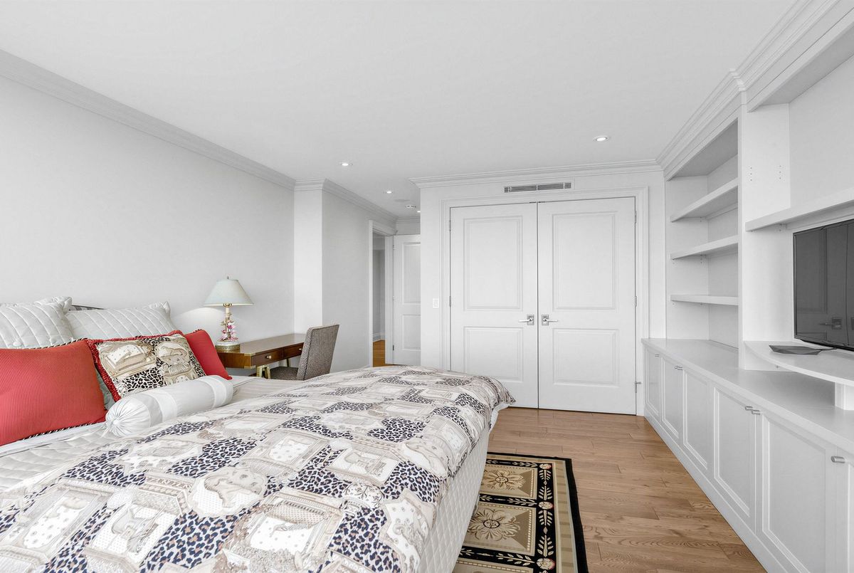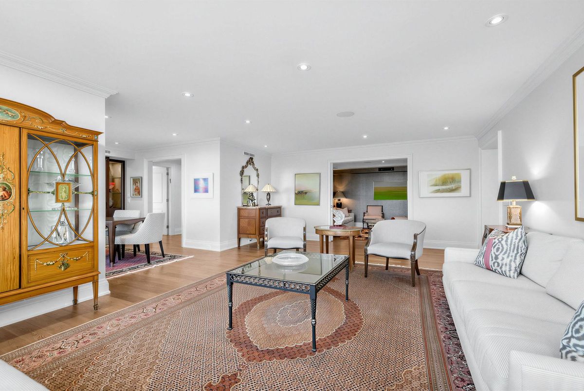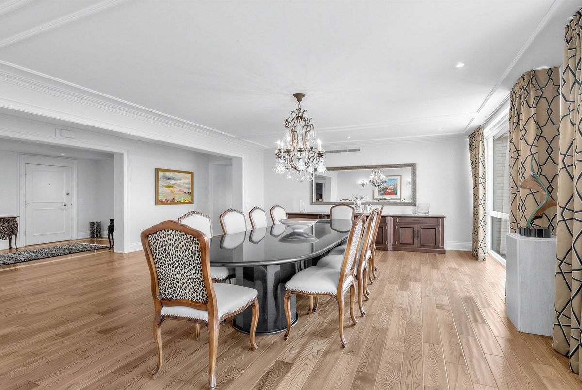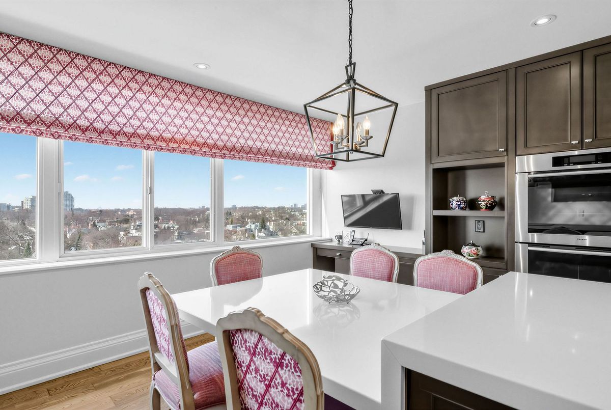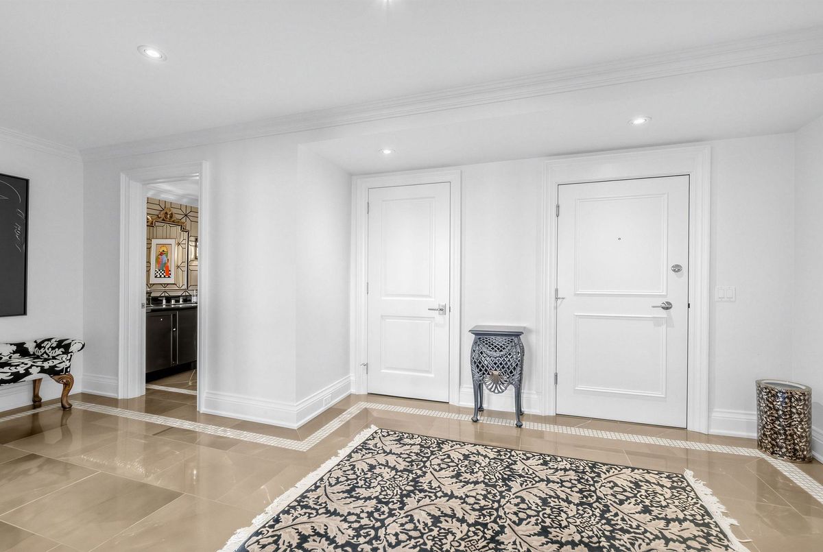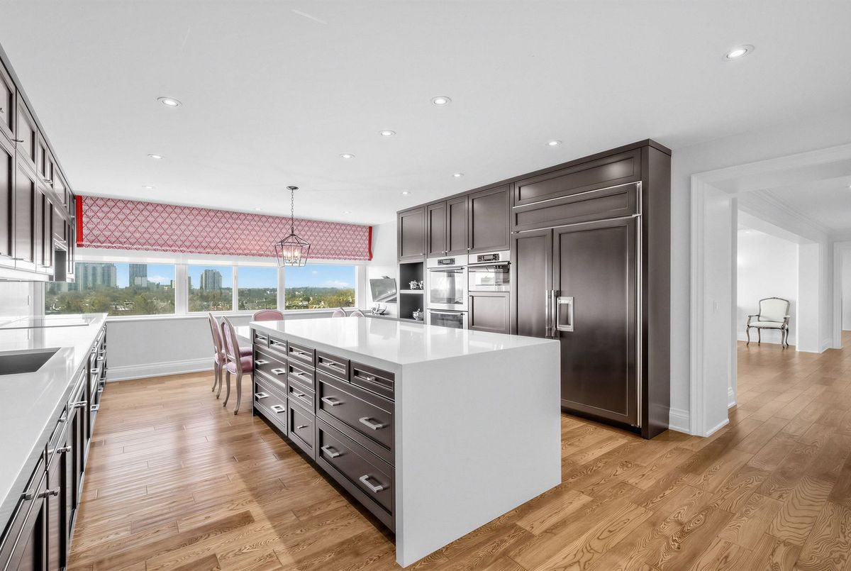 The moment you enter this elegant 2,823 square foot corner suite, you realize you have arrived somewhere special. The spacious inlaid marble floor entry opens to an enormous dining room with a sweeping west view, overlooking Lower Forest Hill Village and beyond. The bar area off the entertainment size living room serves equally as a card or games room. The fabulous chef's kitchen, equipped with Miele and Sub-Zero appliances is all one could ask for with its expansive centre island, sun filled breakfast room, and enough storage space to satisfy the most prolific cook. The split bedroom plan allows privacy for guests and is equally well suited for live-in help. The unit has a large laundry room with full sized Miele washer and dryer, and plenty of storage. There are pot lights throughout, battery operated sun-blinds on all the windows, and two separate furnaces and air-conditioning units for 2-zone control. This in-demand building is walking distance to Upper Canada College, Forest Hill Collegiate, the Village Shops and is just steps to TTC. There is 24-hour concierge service with valet parking included, and a car wash service is available for a small fee. Other amenities include a party/meeting room, an exercise room and a lovely private garden for enjoying the outdoors. This fabulous home will not disappoint.