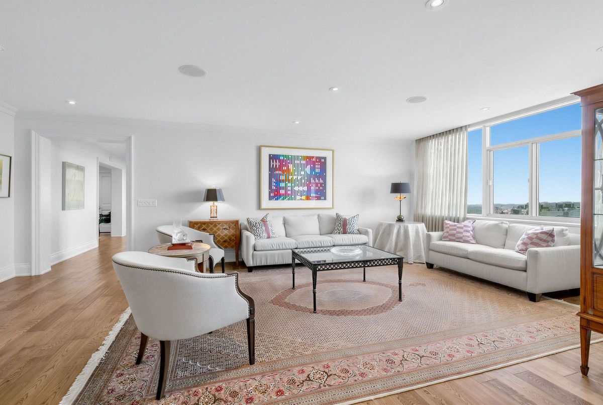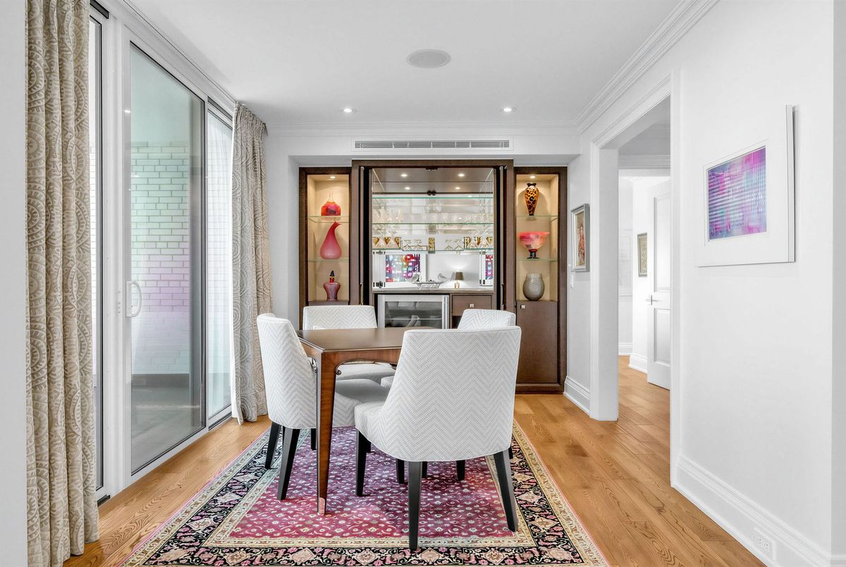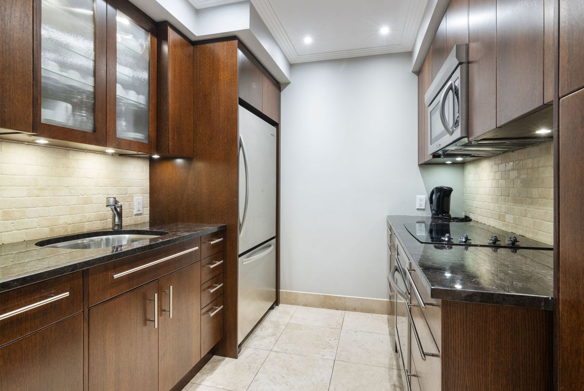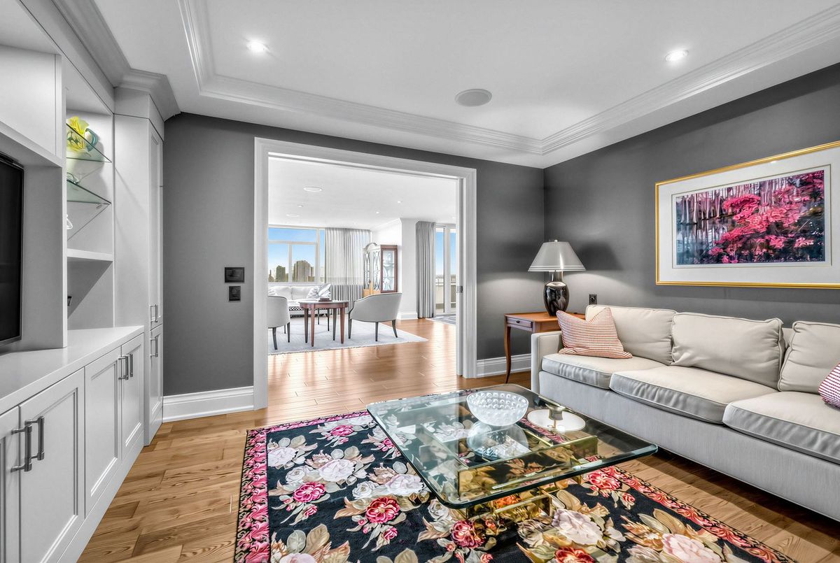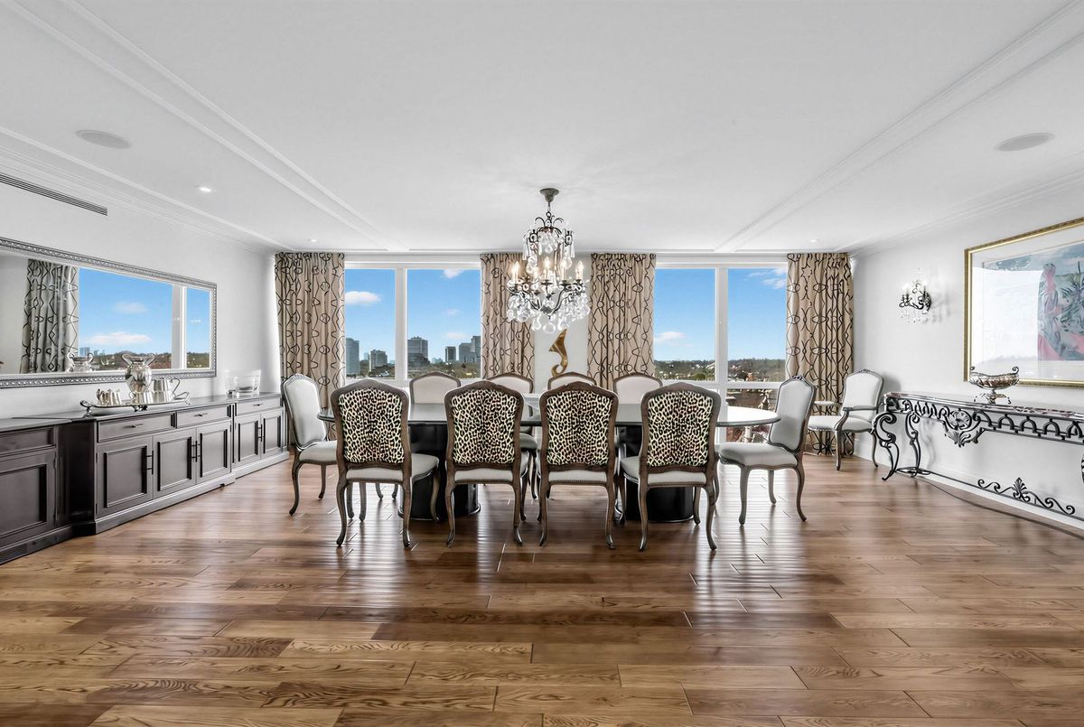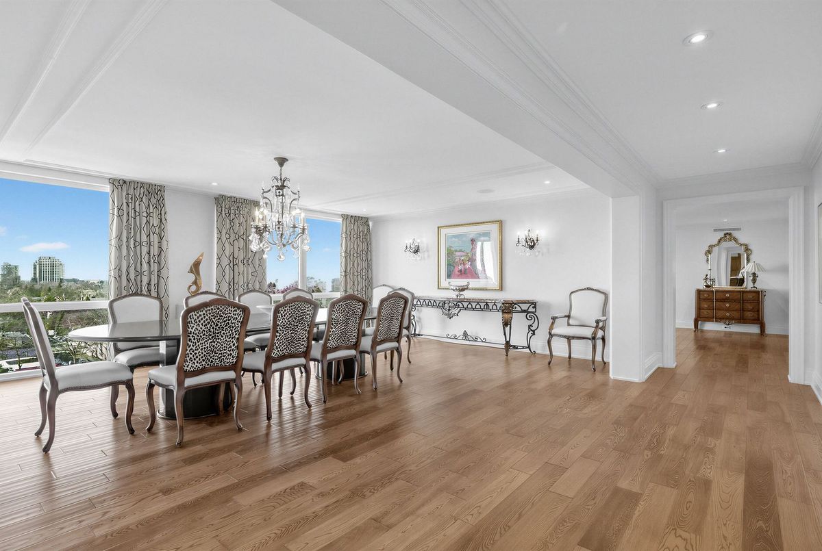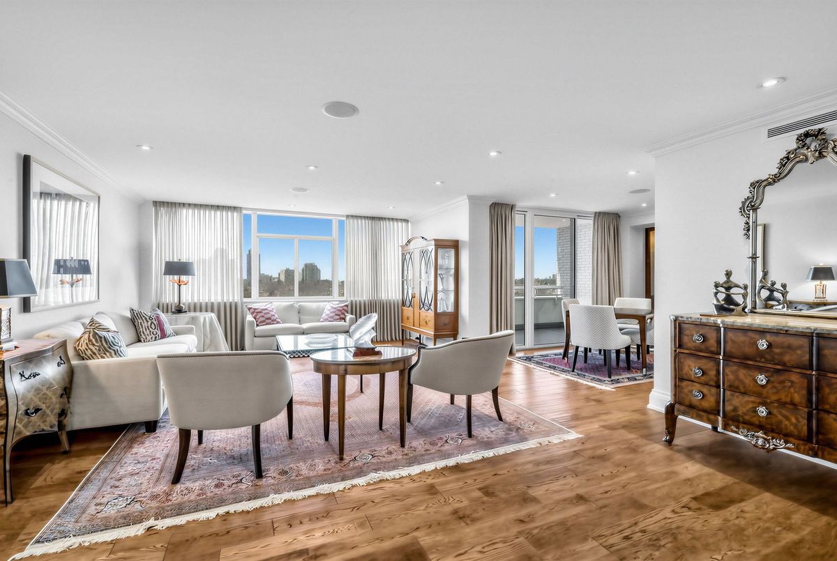 The moment you enter this elegant 2,823 square foot corner suite, you realize you have arrived somewhere special. The spacious inlaid marble floor entry opens to an enormous dining room with a sweeping west view, overlooking Lower Forest Hill Village and beyond. The bar area off the entertainment size living room serves equally as a card or games room. The fabulous chef's kitchen, equipped with Miele and Sub-Zero appliances is all one could ask for with its expansive centre island, sun filled breakfast room, and enough storage space to satisfy the most prolific cook. The split bedroom plan allows privacy for guests and is equally well suited for live-in help. The unit has a large laundry room with full sized Miele washer and dryer, and plenty of storage. There are pot lights throughout, battery operated sun-blinds on all the windows, and two separate furnaces and air-conditioning units for 2-zone control. This in-demand building is walking distance to Upper Canada College, Forest Hill Collegiate, the Village Shops and is just steps to TTC. There is 24-hour concierge service with valet parking included, and a car wash service is available for a small fee. Other amenities include a party/meeting room, an exercise room and a lovely private garden for enjoying the outdoors. This fabulous home will not disappoint.
